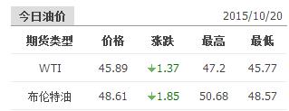 2015年10月20日國際原油價格表